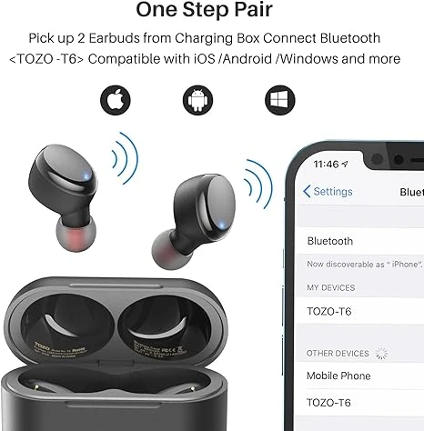 Experience the ultimate in sound quality and convenience with the TOZO T6 True Wireless Earbuds. Equipped with Bluetooth 5.3 technology, these earbuds ensure seamless connectivity and superior audio performance. Enjoy up to 45 hours of playtime with the included wireless charging case. Designed for an active lifestyle, the IPX8 waterproof rating protects against sweat and rain, making them perfect for workouts and outdoor adventures. Customize your listening experience with 32 preset EQs via the TOZO app, delivering premium deep bass and crystal-clear stereo sound. With a built-in mic for calls and a sleek, ergonomic design, the TOZO T6 earbuds redefine what it means to listen on the go.